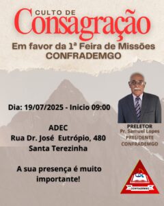 Dia 26 de julho, ocorrerá nossa 1ª Feira de Missões